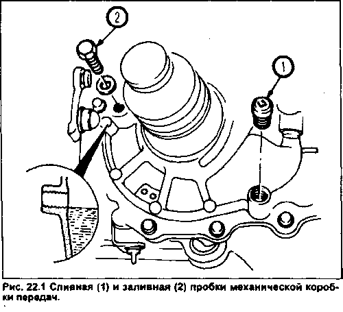 22. Контроль уровня масла в механической коробке передач.