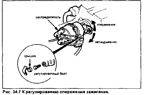 8. Затяните регулировочный болт и перепроверьте установку зажигания