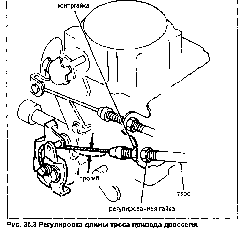 36. Осмотр тяг управления дроссельной заслонкой.